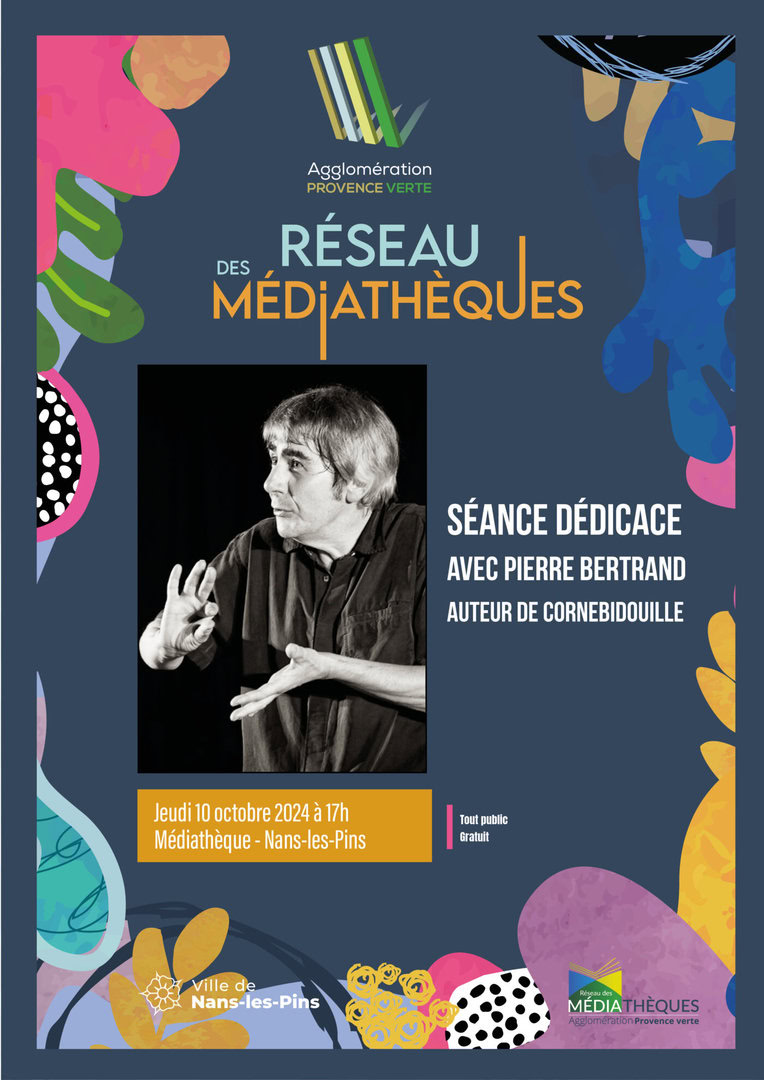 Dans le cadre de la programmation culturelle du Réseau des médiathèques, Pierre Bertrand sillonnera les médiathèques de la Provence Verte du 7 au 11 octobre 2024. Ses histoires se promènent souvent entre tendresse et ironie, humour et poésie.
