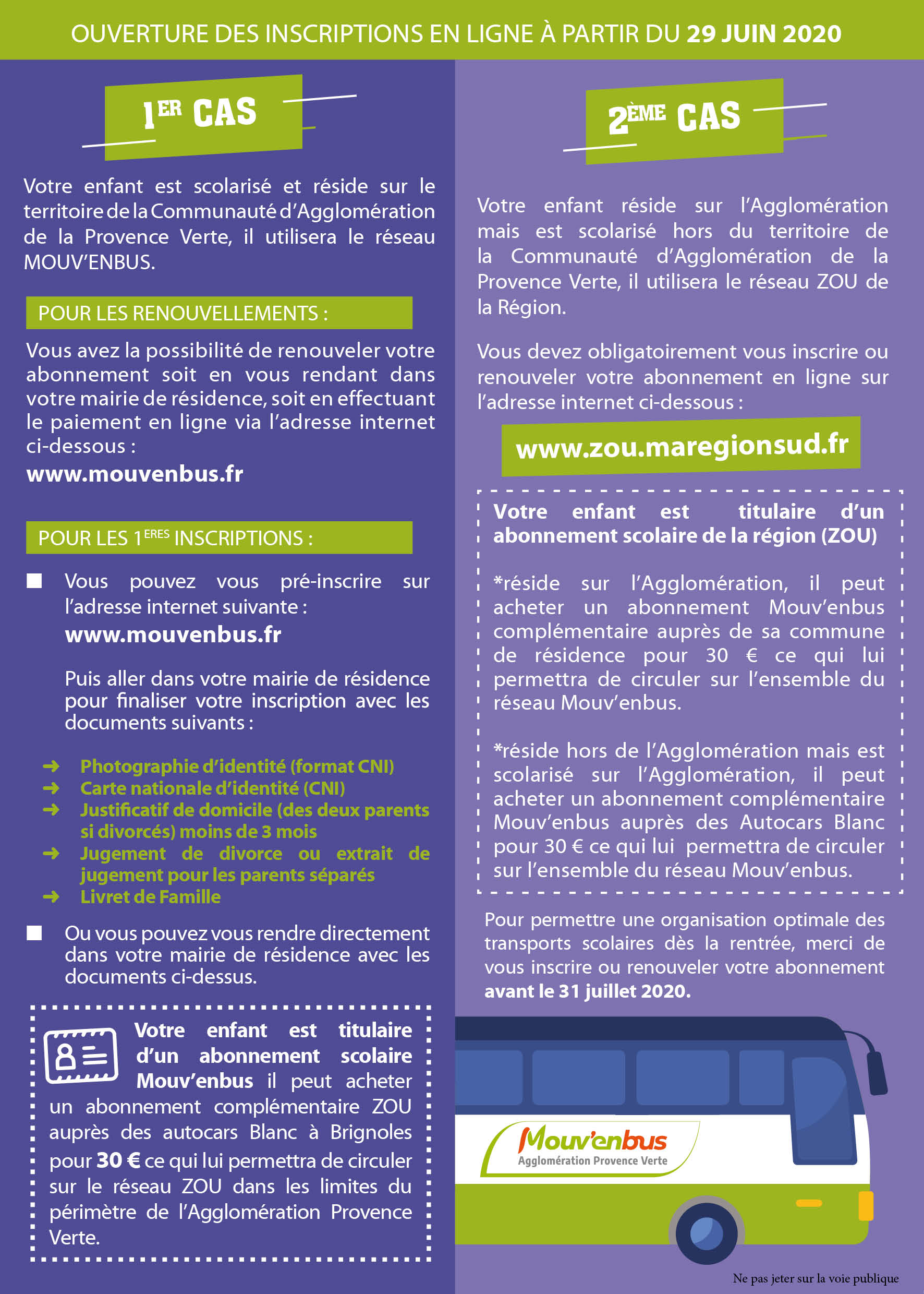 Renouvellement et abonnements au réseau Mouv’enbus pour la rentrée scolaire 2020-2021