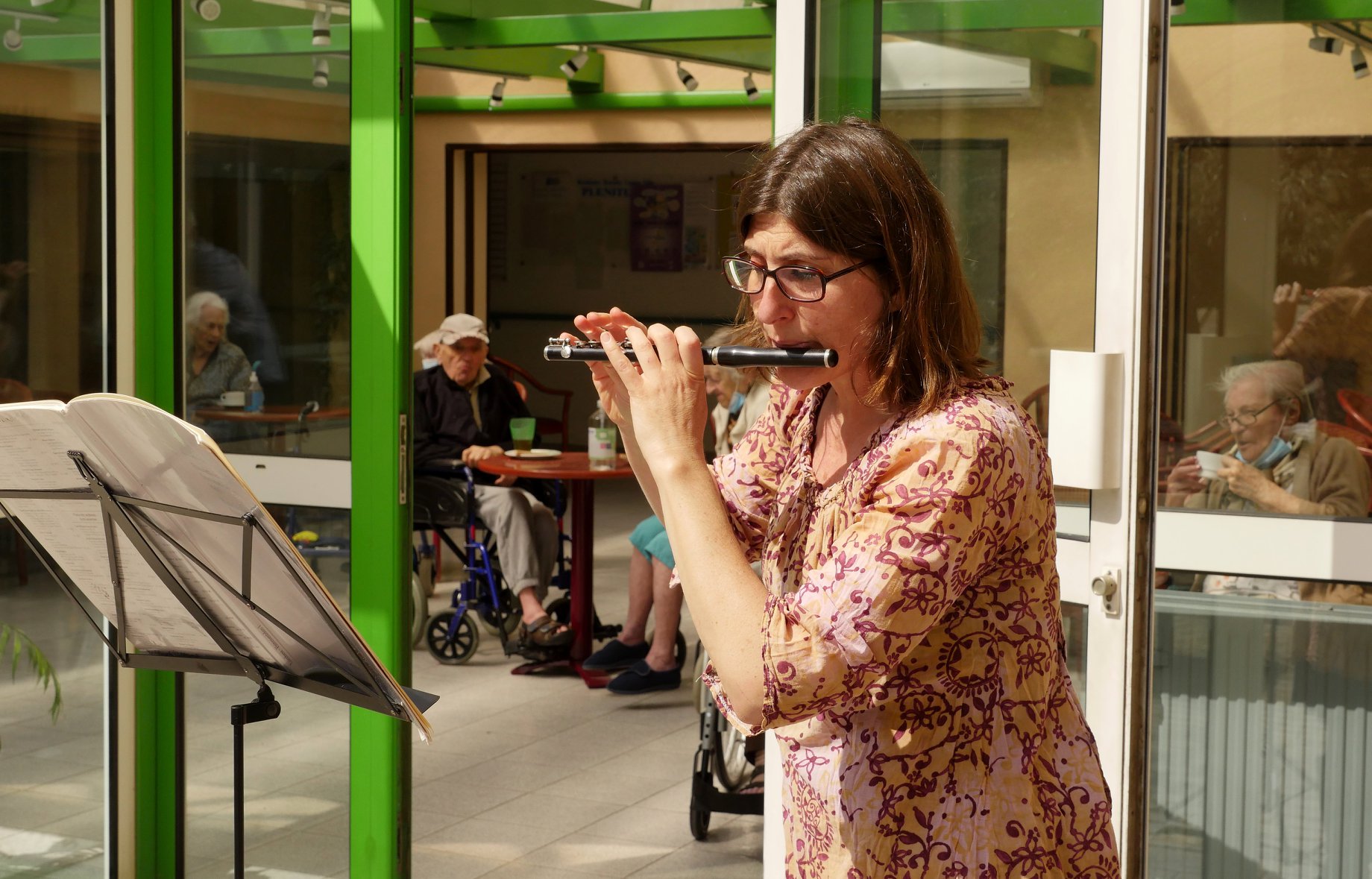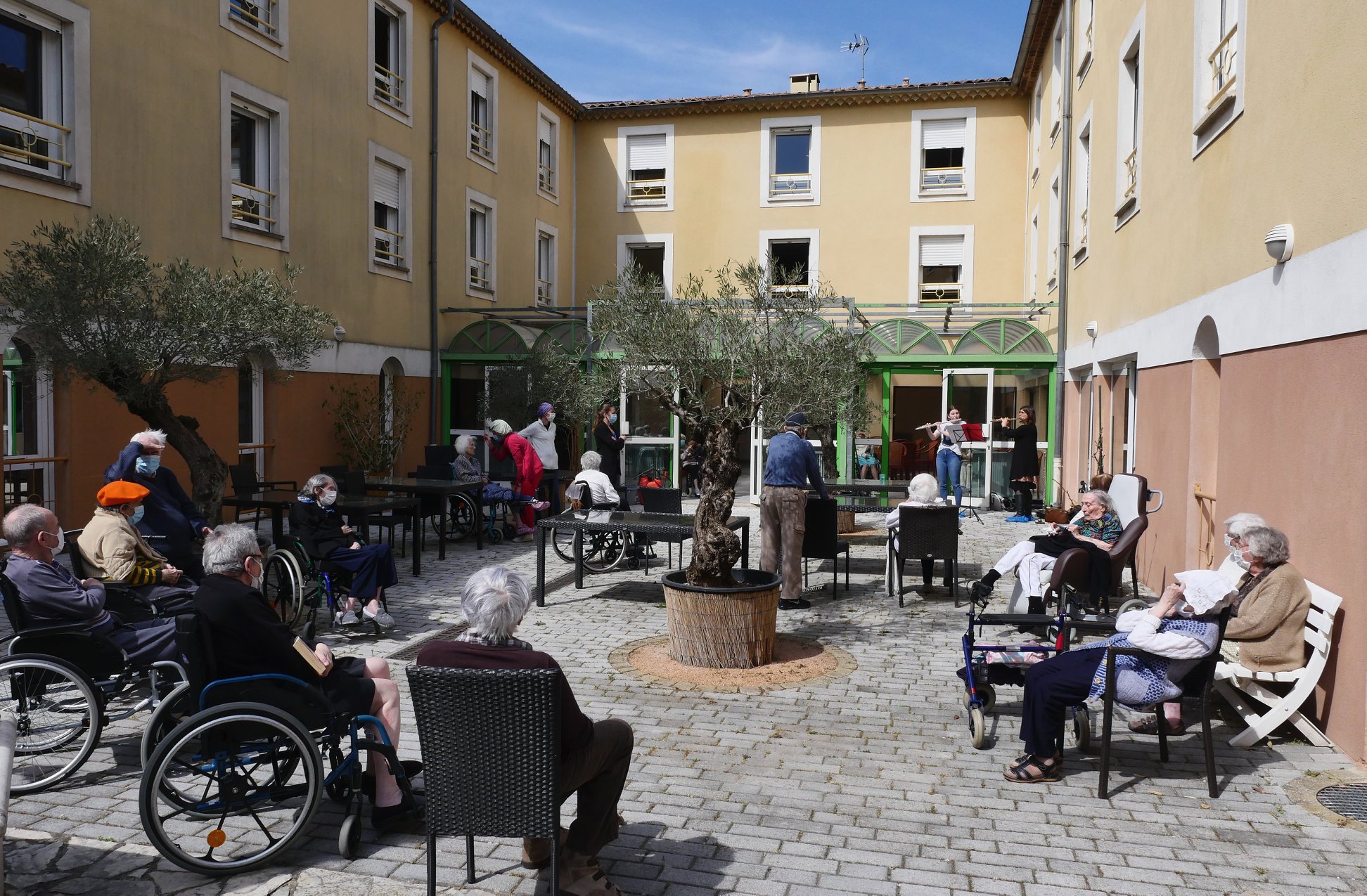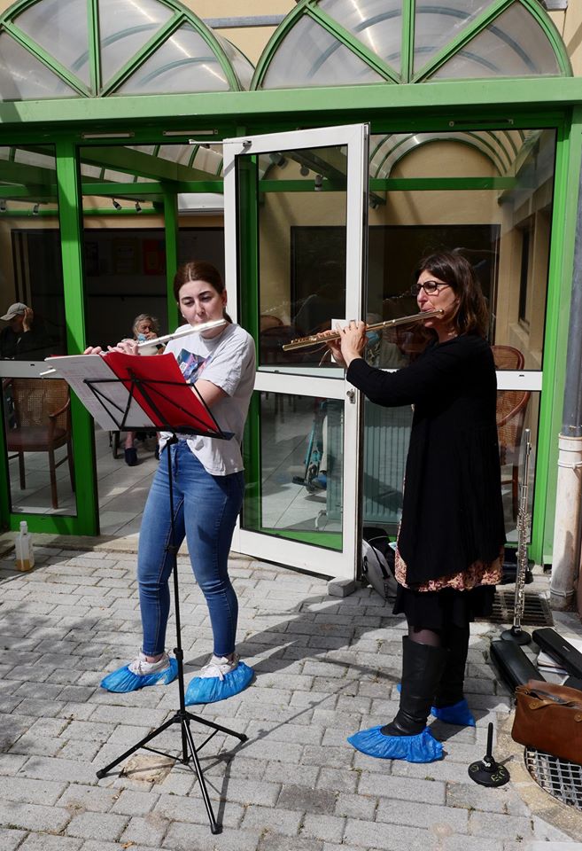 L’un à l’EHPAD « Plénitude » situé au cœur de la Ville de Garéoult où se produisaient Charlotte Campana, professeur de flûte, et sa fille Colette, la plupart des résidents profitant de ce concert en plein air, dans le patio ensoleillé de l’établissement.