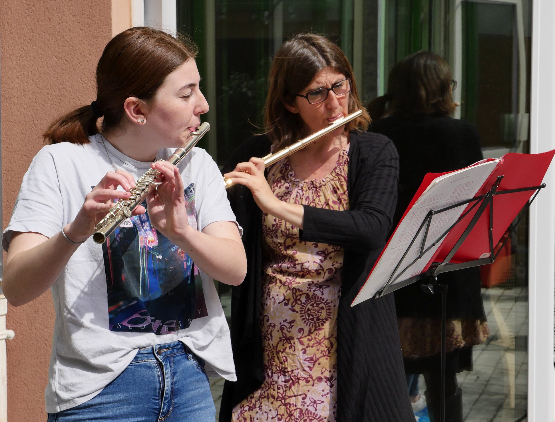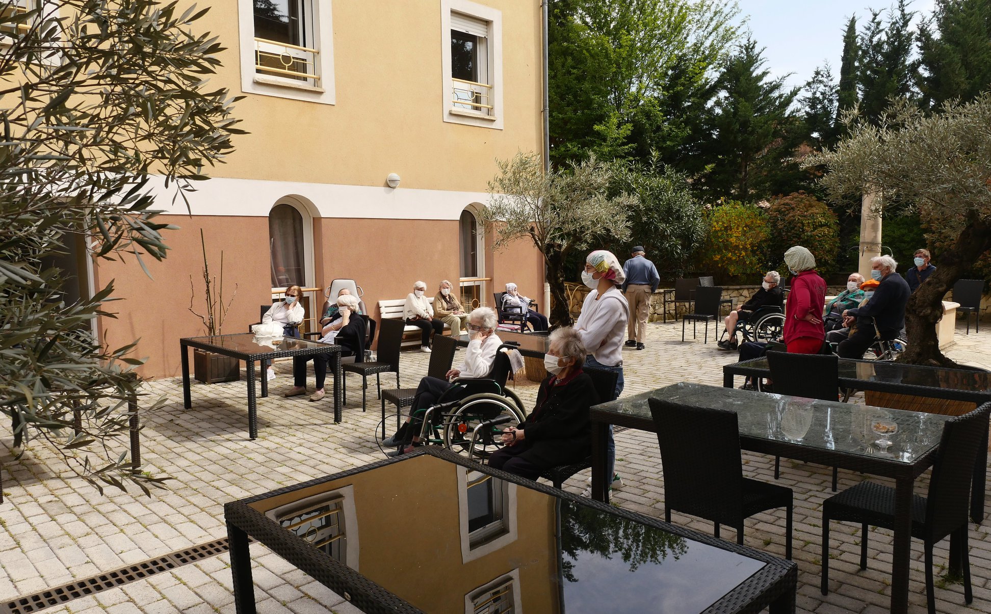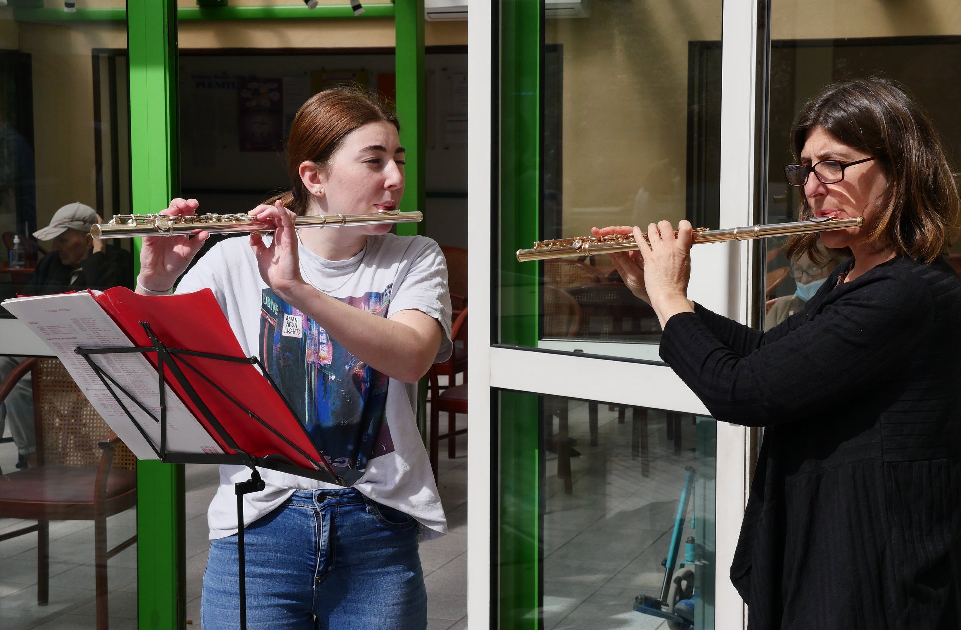 L’un à l’EHPAD « Plénitude » situé au cœur de la Ville de Garéoult où se produisaient Charlotte Campana, professeur de flûte, et sa fille Colette, la plupart des résidents profitant de ce concert en plein air, dans le patio ensoleillé de l’établissement.
