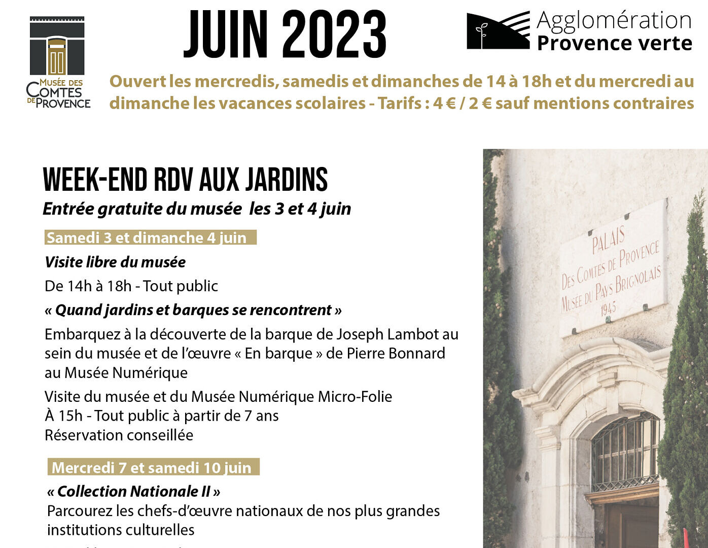 - 3 et 4 juin : Profitez d’un week-end exceptionnel « Rendez-vous aux jardins » ! Découvrez la barque de Joseph Lambot et continuez votre visite au musée numérique avec l’œuvre de Pierre Bonnard.