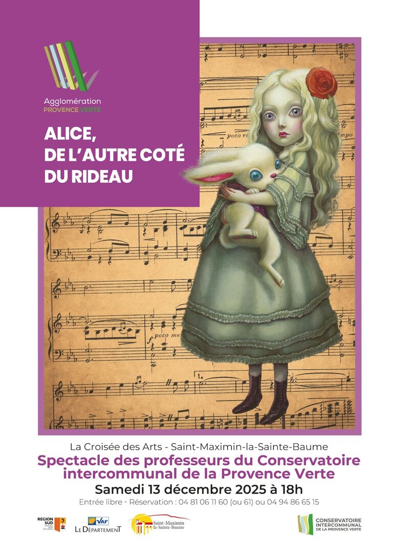 La Croisée des Arts Saint-Maximin-la-Sainte-BaumeUn soir, Alice se retrouve seule dans un théâtre désert… par hasard ? Par magie ? Elle croit à un jeu, mais lorsqu’elle passe derrière le rideau, un tout autre monde l’attend : un univers vibrant, musical, dansé, peuplé de personnages aussi fantasques qu’attachants. Entre rêve, réalité et illusion, que va-t-elle découvrir vraiment ? "Qu’est notre vie sinon un rêve ?" – Lewis Carroll 📍 Samedi 13 décembre à 18h - La Croisée des Arts - Saint-Maximin-la-Sainte-Baume Une aventure poétique et décalée, librement inspirée de Lewis Carroll. Note d'intention de Frédéric ONNIS, professeur de théâtre au conservatoire : Ce spectacle est [...]