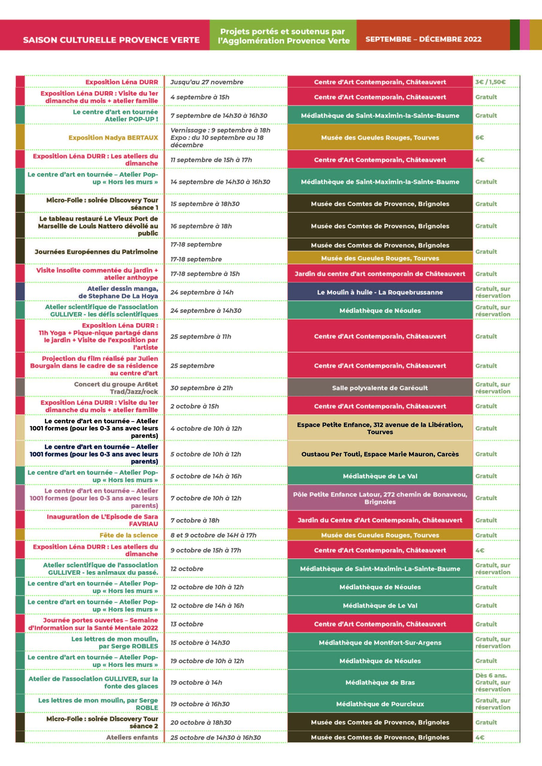 Agenda Saison culturelle en Provence Verte – Septembre/Décembre 2022
