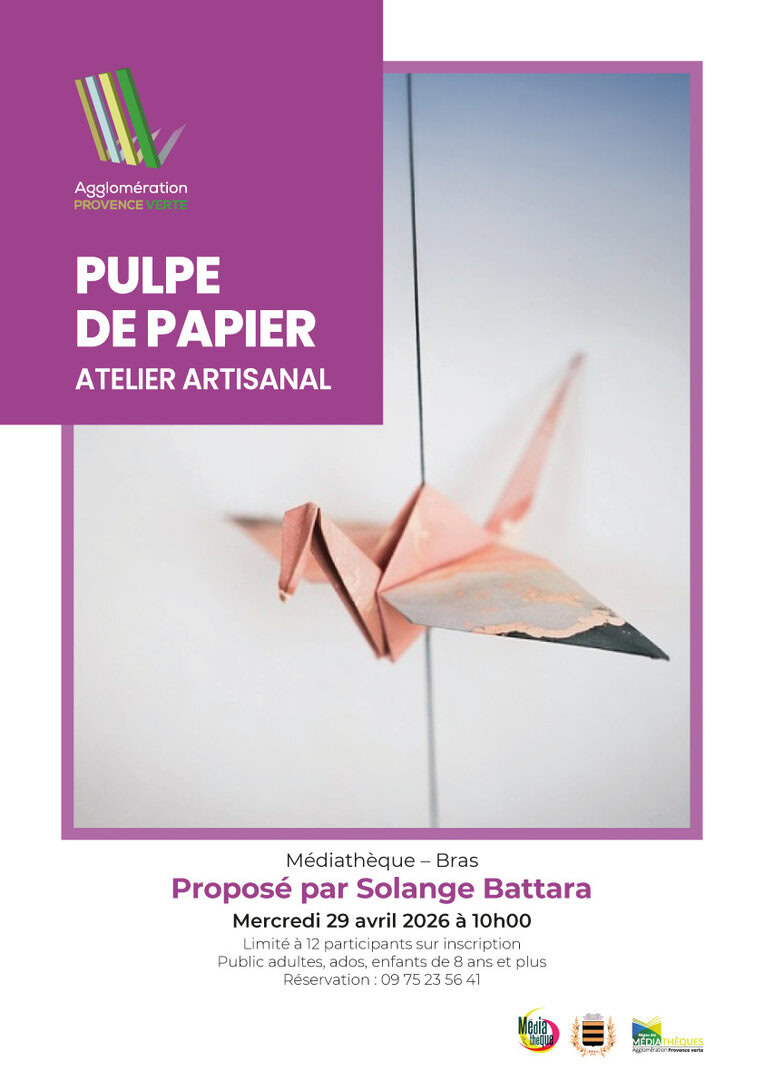 ➡️ Proposés dans le cadre de la programmation culturelle du Réseau des Médiathèques de l’Agglomération Provence verte, retrouvez toutes les dates des prochains ateliers dans la brochure mise à disposition dans les 16 médiathèques du réseau et les 28 mairies du territoire de la Provence verte.