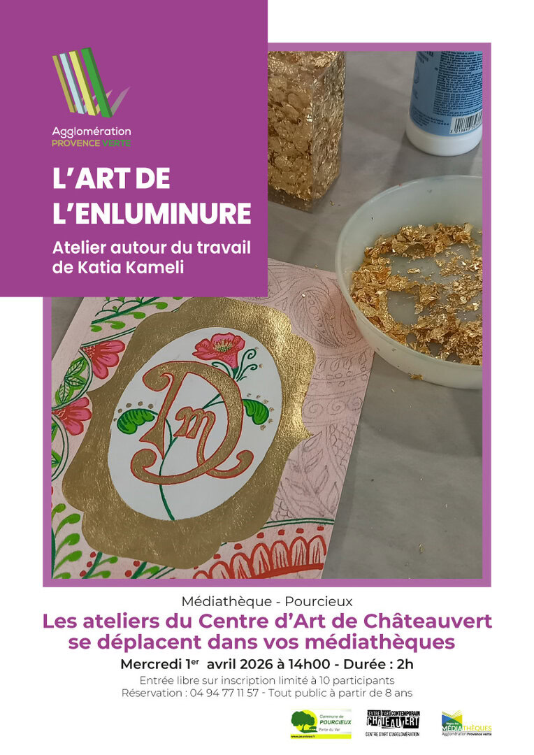 ➡️ Proposés dans le cadre de la programmation culturelle du Réseau des Médiathèques de l’Agglomération Provence verte, retrouvez toutes les dates des prochains ateliers dans la brochure mise à disposition dans les 16 médiathèques du réseau et les 28 mairies du territoire de la Provence verte.