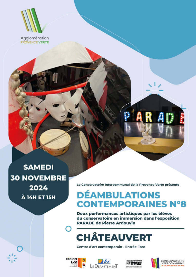 Depuis plusieurs années, le Conservatoire Intercommunal de la Provence Verte s’associe au centre d’art contemporain à Châteauvert pour proposer une déambulation artistique d’esthétique contemporaine à la fin de l’exposition estivale de l’année en cours.