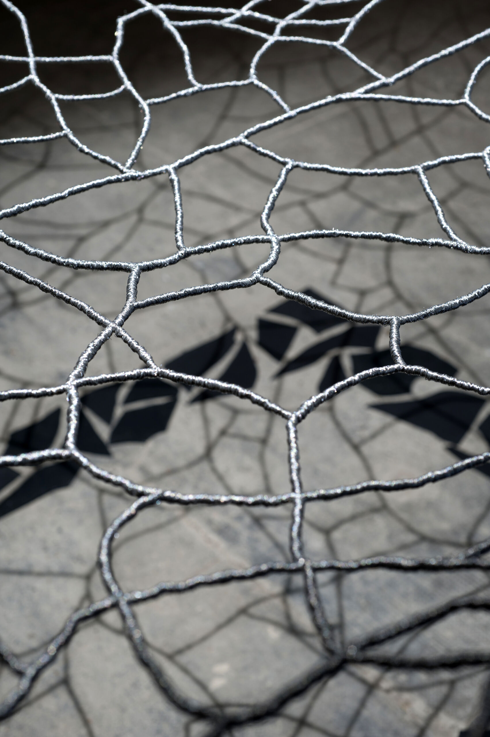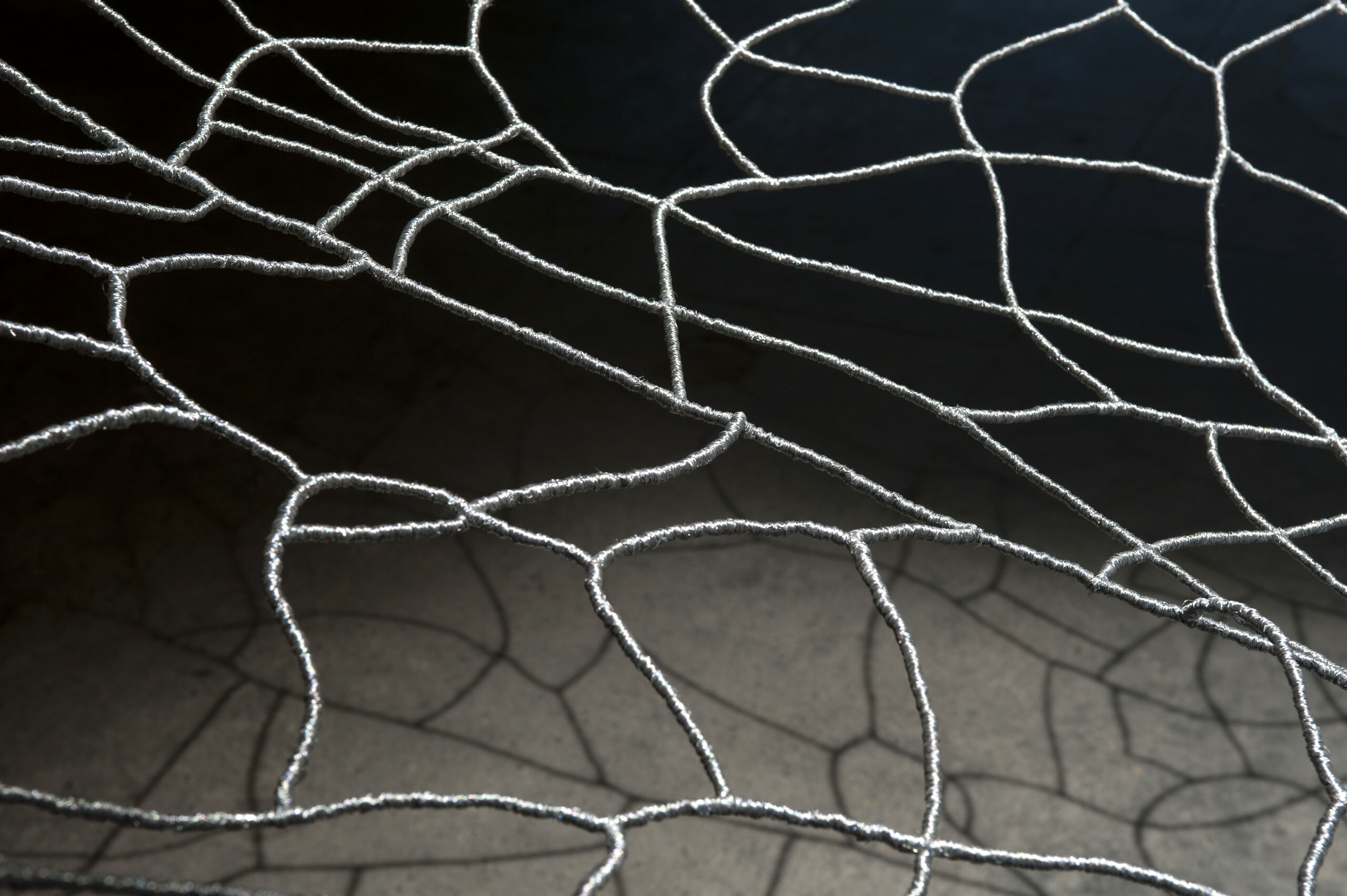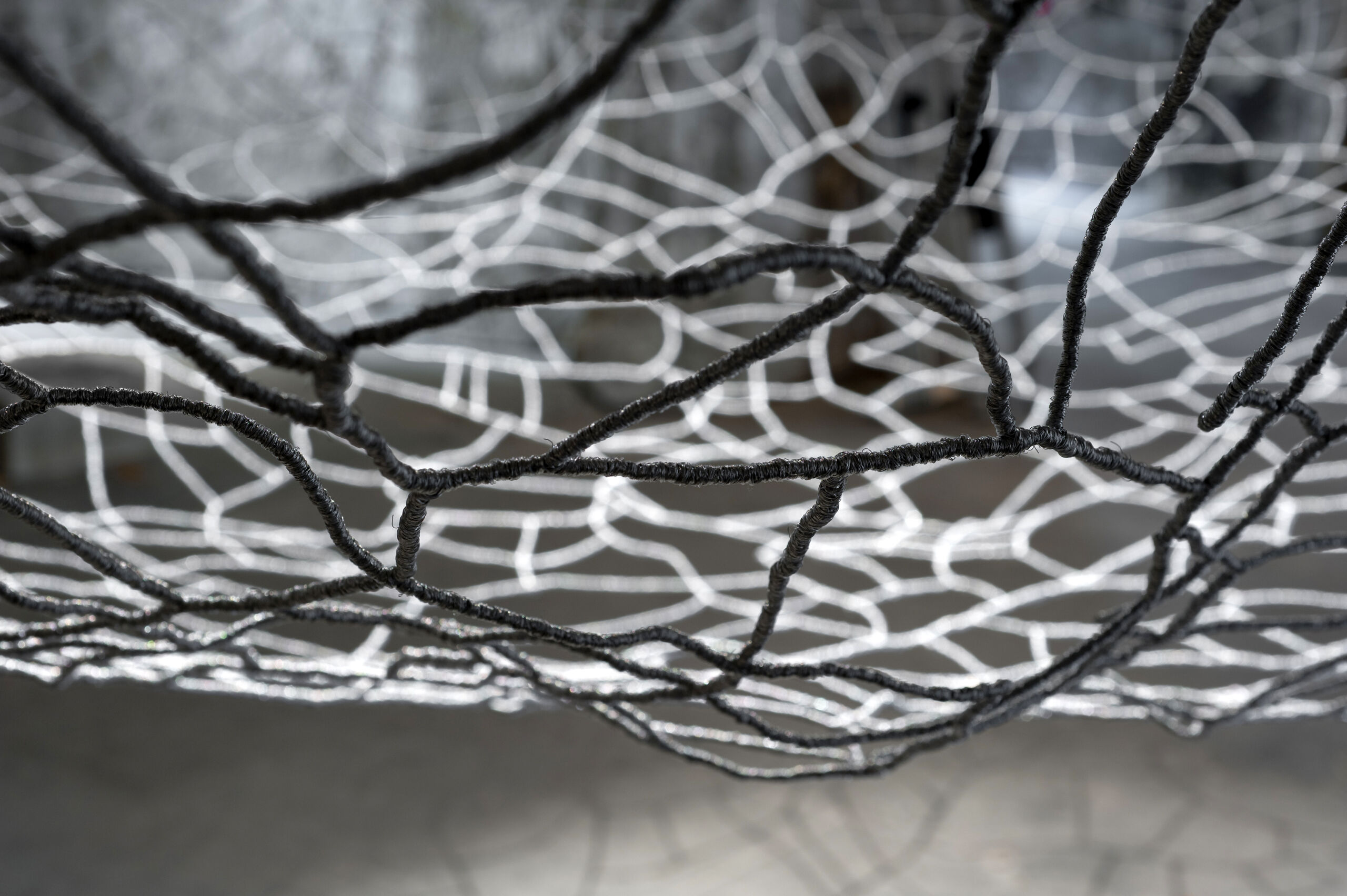Dans cette exposition, Nadya Bertaux exprime à travers ses sculptures l’importance de la mémoire, de l’acquis et de la transmission. La puissance de ses installations, réalisées en résidence au Centre d’art de Châteauvert en juin, émane de l’apparente tension des fibrilles d’aluminium qui sont en réalité le fruit d’entrecroisements fragiles.