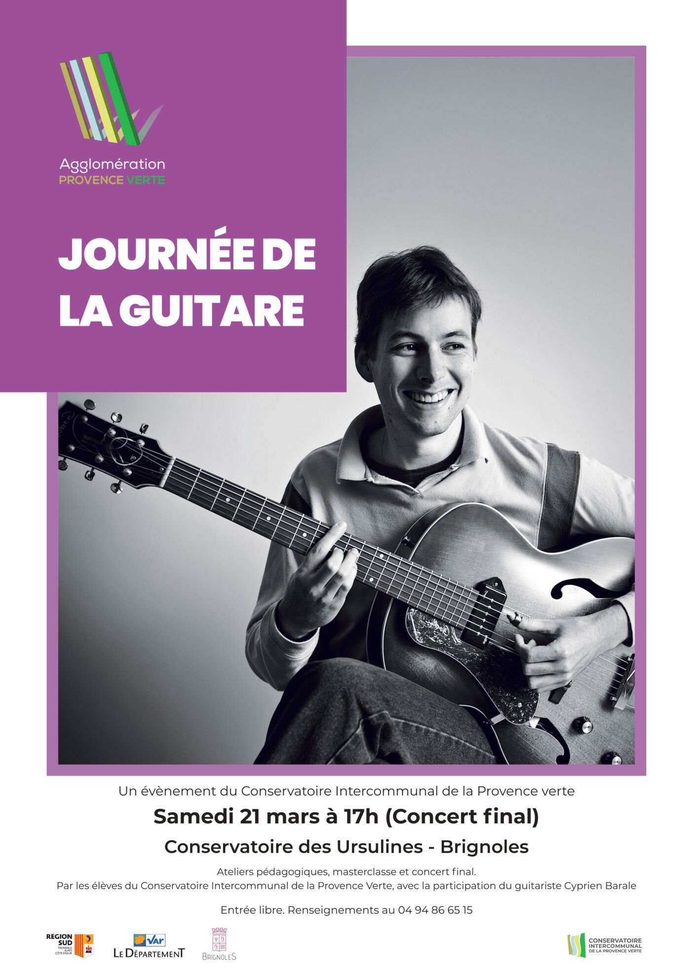 Le Conservatoire Intercommunal de la Provence verte donne rendez-vous aux amateurs de guitare le samedi 21 mars 2026 pour une journée exceptionnelle, ouverte au public en soirée avec un concert de clôture à entrée libre.