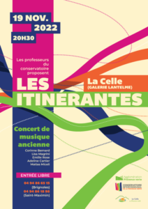 | GratuitLes 18, 19 et 20 novembre prochains, les professeurs du Conservatoire Intercommunal de la Provence Verte repartent sillonner les communes du territoire pour offrir des concerts de musique ancienne.