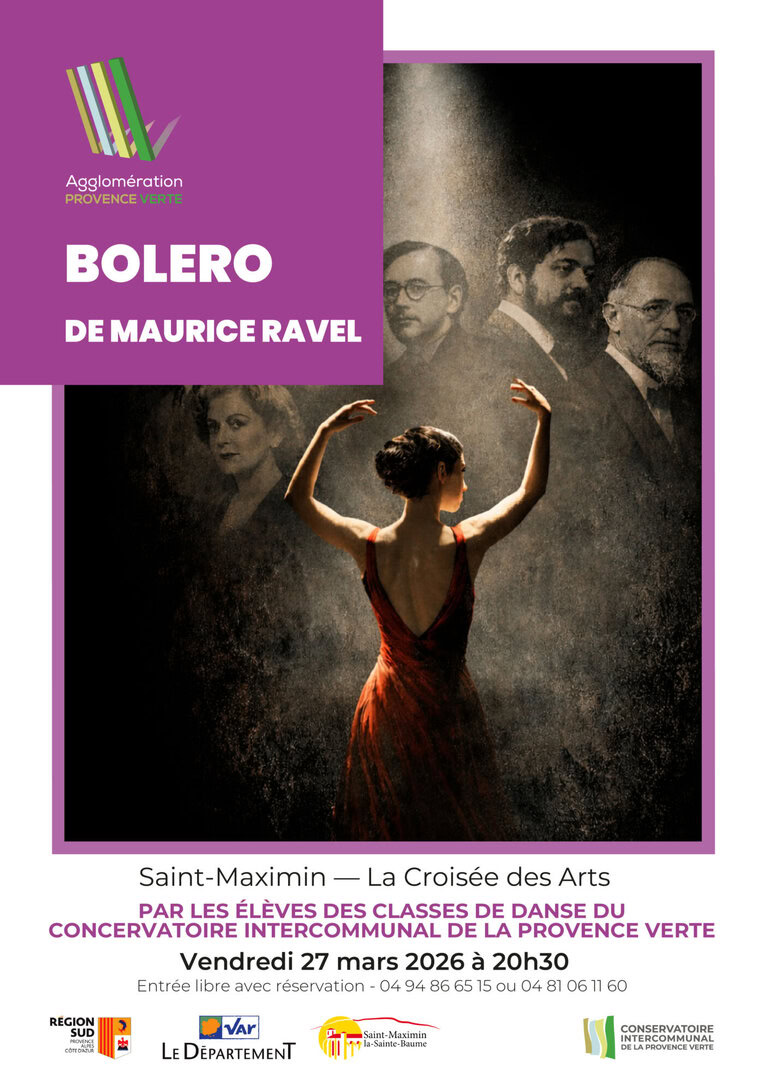 Saint-Maximin-la-Sainte-BaumeLes élèves des classes de danse du Conservatoire Intercommunal de la Provence verte montent sur scène pour une fresque chorégraphique et artistique autour du célèbre Boléro de Maurice Ravel. Vendredi 27 mars 2026, la scène de La Croisée des Arts accueille un spectacle ambitieux porté par les élèves des classes de danse du Conservatoire Intercommunal de la Provence verte. À travers une fresque chorégraphique et artistique, le public est invité à suivre le destin d'Ida Rubinstein, muse iconique, dans sa quête pour créer son chef-d'œuvre. Sur ce chemin, elle croise quelques grands génies de son temps : le surréalisme de Dalí, [...]