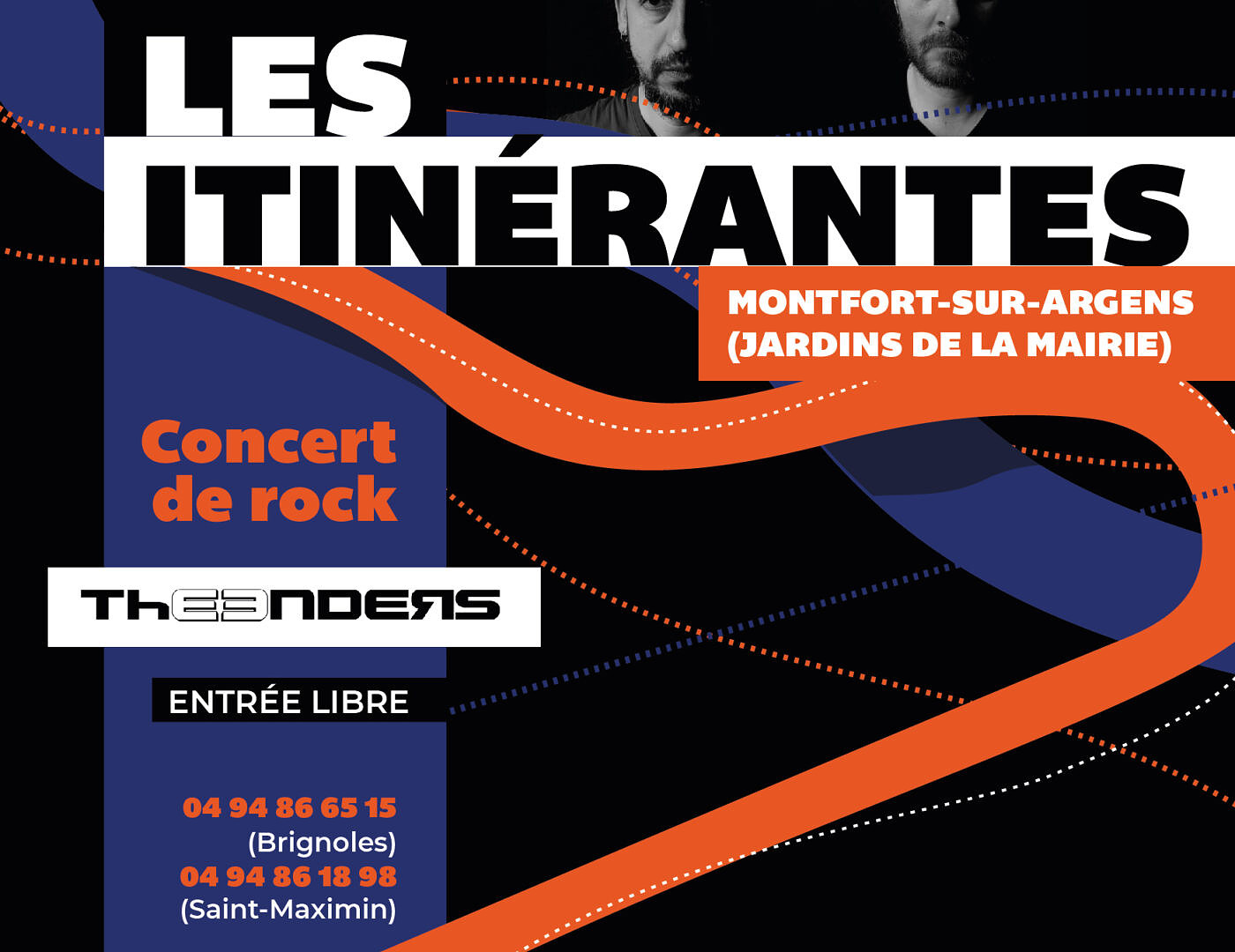 Jardin Mairie - Montfort sur ArgensDans le cadre des Itinérantes, le Conservatoire Intercommunal de la Provence Verte propose une deuxième soirée concert donné par le groupe The Enders, composé de Grégory Giraudo (voix, guitare), Olivier Viac (Guitare), Antoine Moutet (guitare basse), Laurent Ambard (batterie) : Samedi 1er juillet 2023 à 21h Dans le jardin de la mairie à Montfort-sur-Argens Entrée libre Renseignements auprès des secrétariats du conservatoire : Brignoles 04 94 86 65 15 / Saint-Maximin-la-Sainte-Baume 04 94 86 18 98