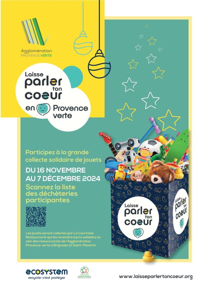 A quelques semaines de Noël, l’Agglomération Provence Verte s’associe à Ecosystem et Ecomaison, pour organiser une grande collecte de jouets d’occasion sur l’ensemble du territoire.