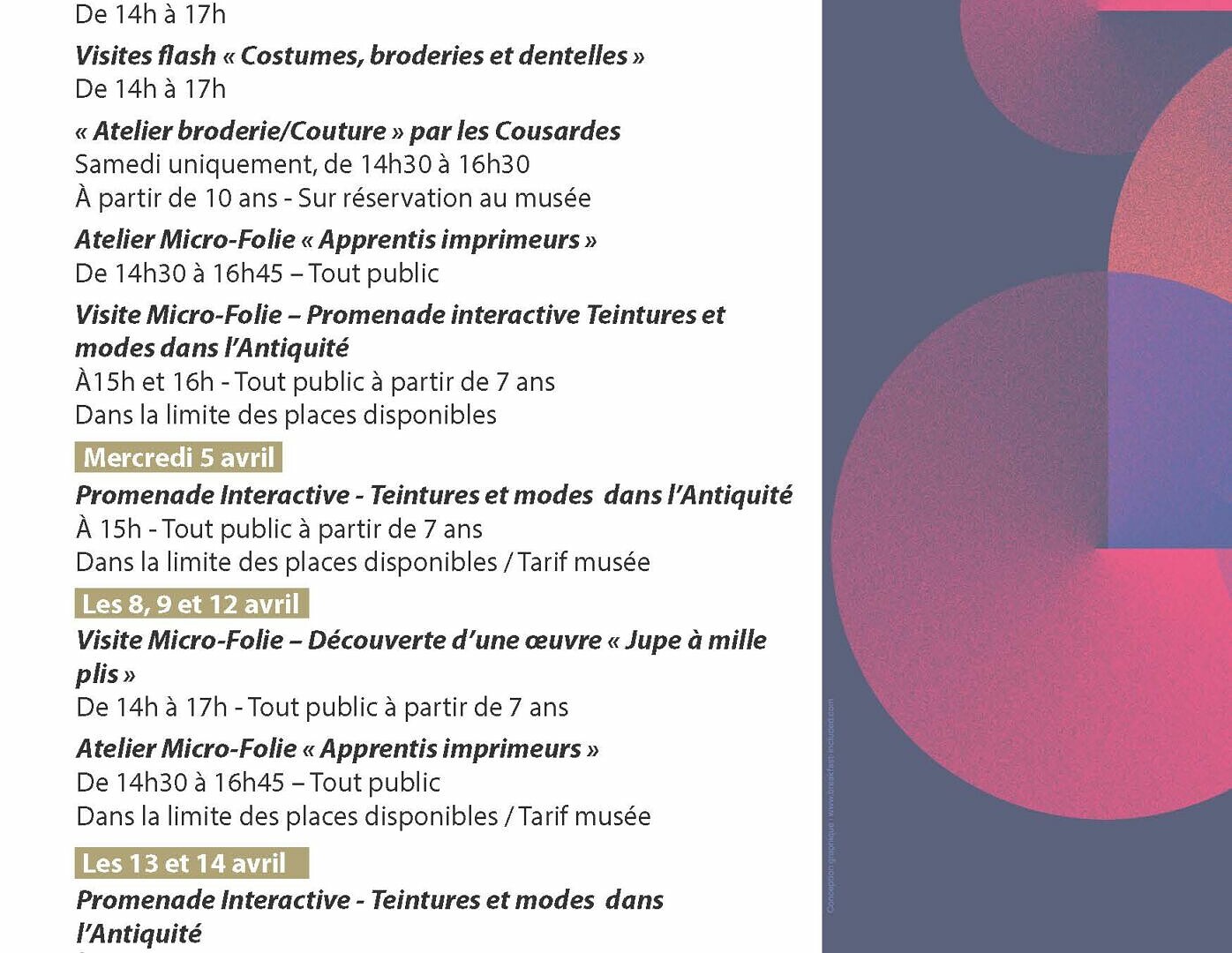 Retrouvez l’essentiel de la programmation du musée en avril sur ce programme détaillé qui célèbre les Journées européennes des métiers d’art.
