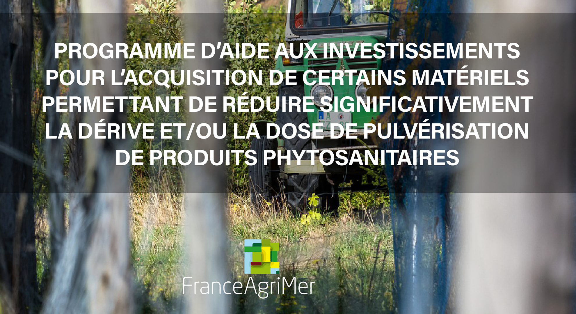 FranceAgriMer lance un programme d’aide doté de 30 millions d’euros pour accompagner l’achat de certains matériels d’application de produits phytosanitaires les plus performants ainsi que certains matériels alternatifs à l’utilisation de ces produits à partir du 29 juillet 2020 jusqu’au 31 décembre 2020.