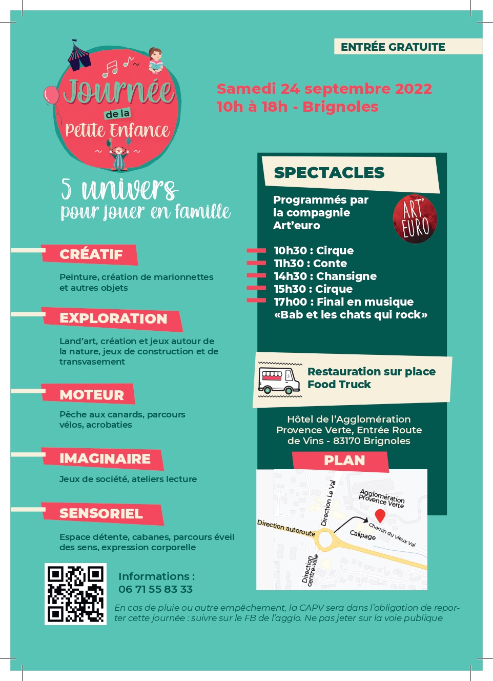 En raison des conditions météorologiques annoncées pour ce samedi 24 septembre 2022, la Journée de la Petite Enfance est reportée au Samedi 3 juin 2023. Rendez-vous au printemps !